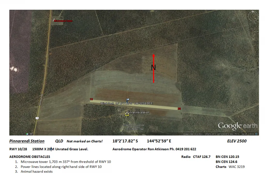 You will find details of the Pinnarendi airstrip (YPNA) in both ERSA and on the station web site (https://thebrickoven.com.au/airstrip-details/). You can also call Ron Atkinson (0409 201 622) if you would like more details about the airstrip.